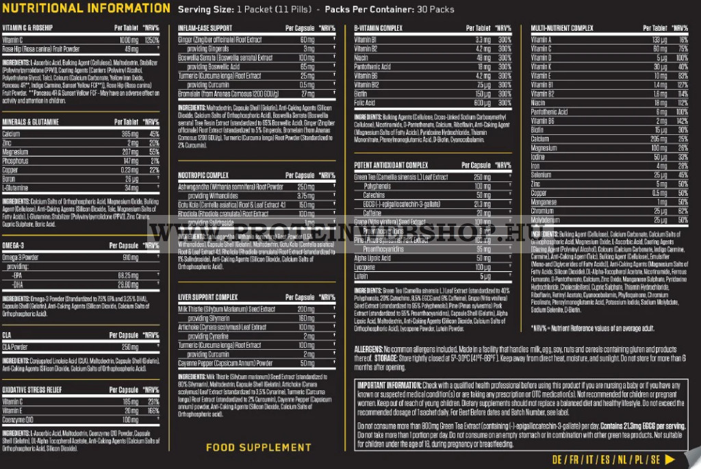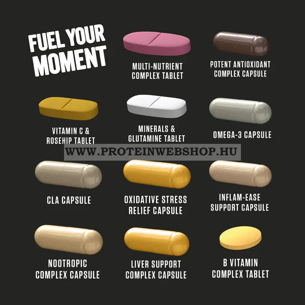 Napi egy csomag áthidalja a mikrotápanyag-hiányokat, javítva az alkalmazkodási szintet, valamint javítva a felépülést és a jólétet. Vitaminok, ásványi anyagok, ízületek támogatása, gyulladáscsökkentő modulátorok, bélrendszer egészségét és immunrendszert támogató segédanyagok, nootropikumok, adaptogének, antioxidánsok, Omega 3 zsírsavak és aminosavak teljes, nem szabadalmaztatott keverékével készült.